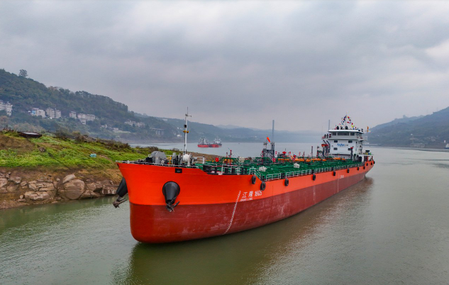 3月3日,由中國船級社(CCS)重慶分社執行審圖和建造檢驗的甲醇-柴油雙燃料化學品液貨船舶“江隆1605”舉行首航儀式。
